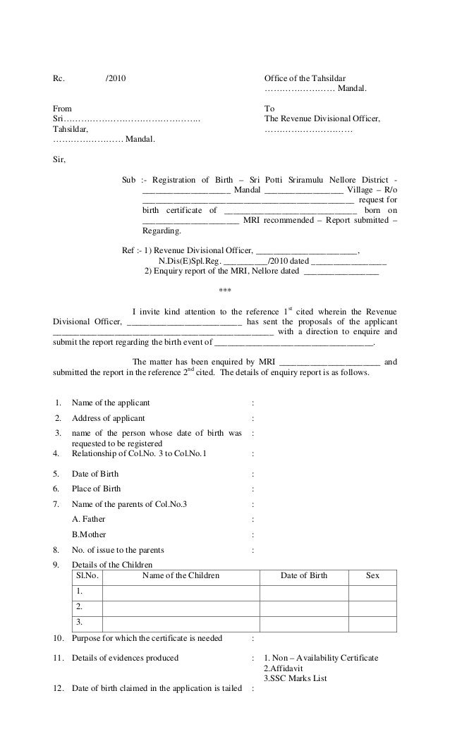 Request Letter For Birth Certificate From Municipal