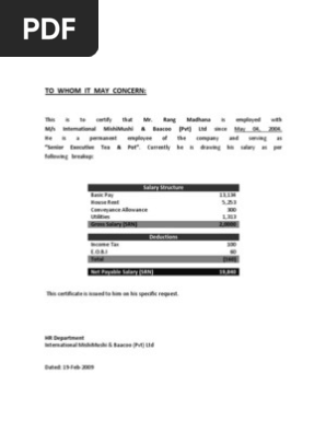 Make sure that all the unnecessary details have been avoided so that one page salary certificate can be prepared. To whom it may concern. The salary certificate to whomsoever it may concern is written to the person you dont know.