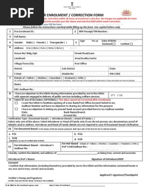 Pdf Aadhaar Enrolment Correction Form Joban Gill