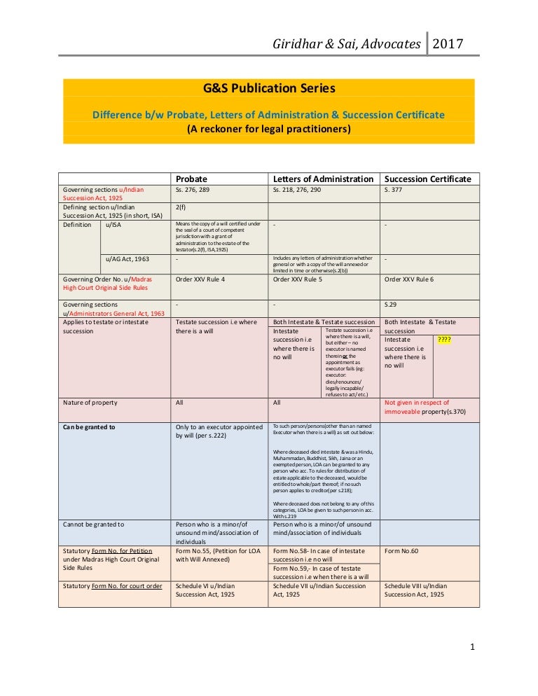 Difference Between Succession Certificate And Letter Of