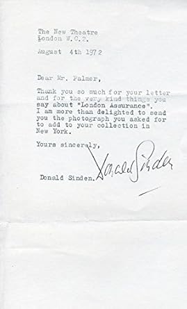 Donald Sinden Typed Letter Signed 08 04 1972 At Amazon S