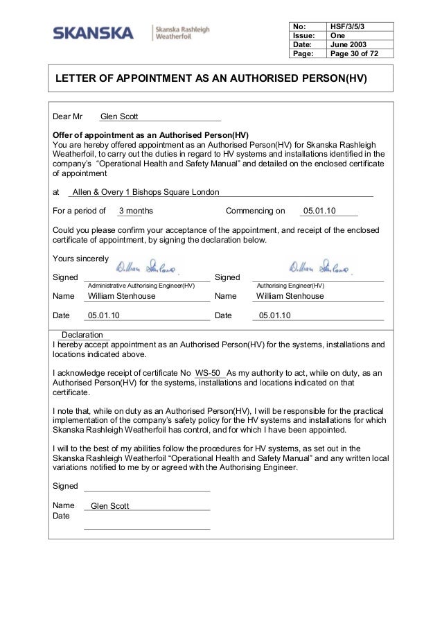 Template Letter Of Appointment To The Position Of Authorised Person