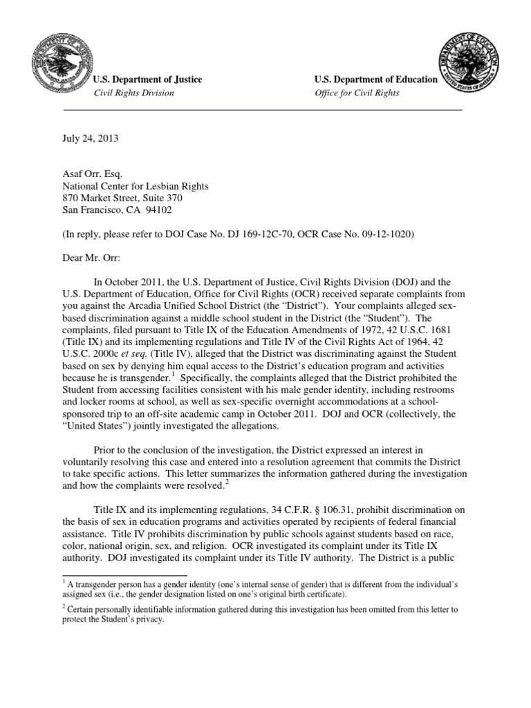 Arcadia Notification Letter Title Ix Derechos De Lgbtq
