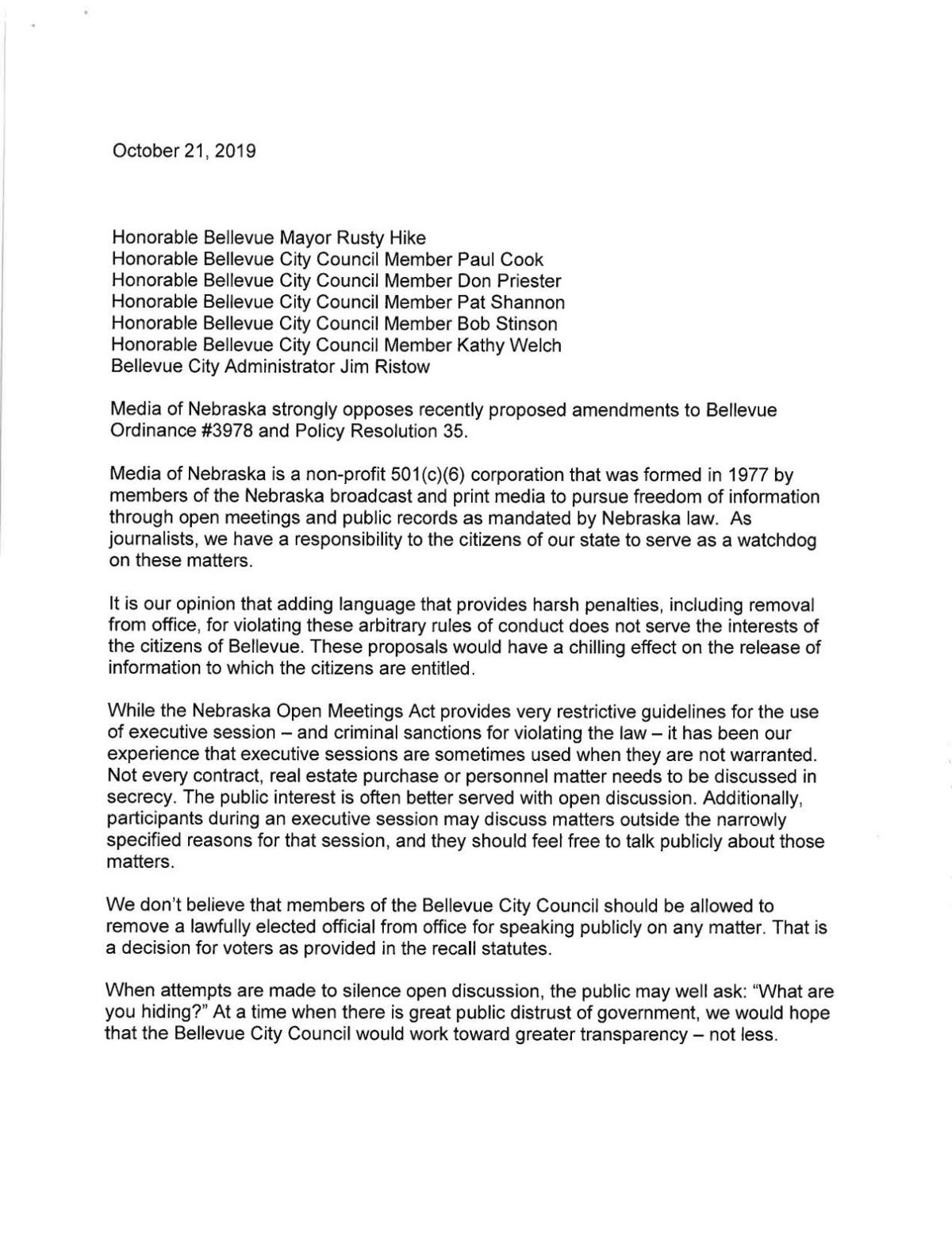 Media Of Nebraska Letter To Bellevue Administration