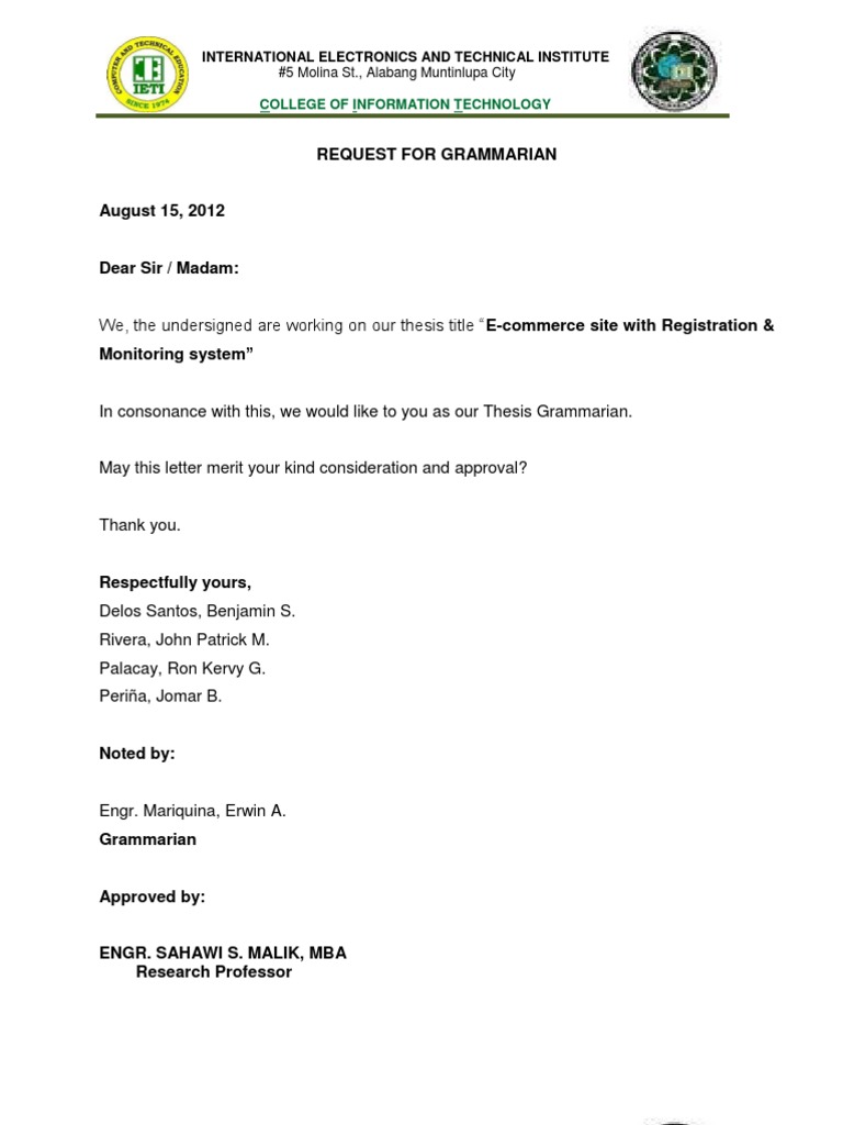 65 Request Letter For Thesis Approval Thesis Request Letter