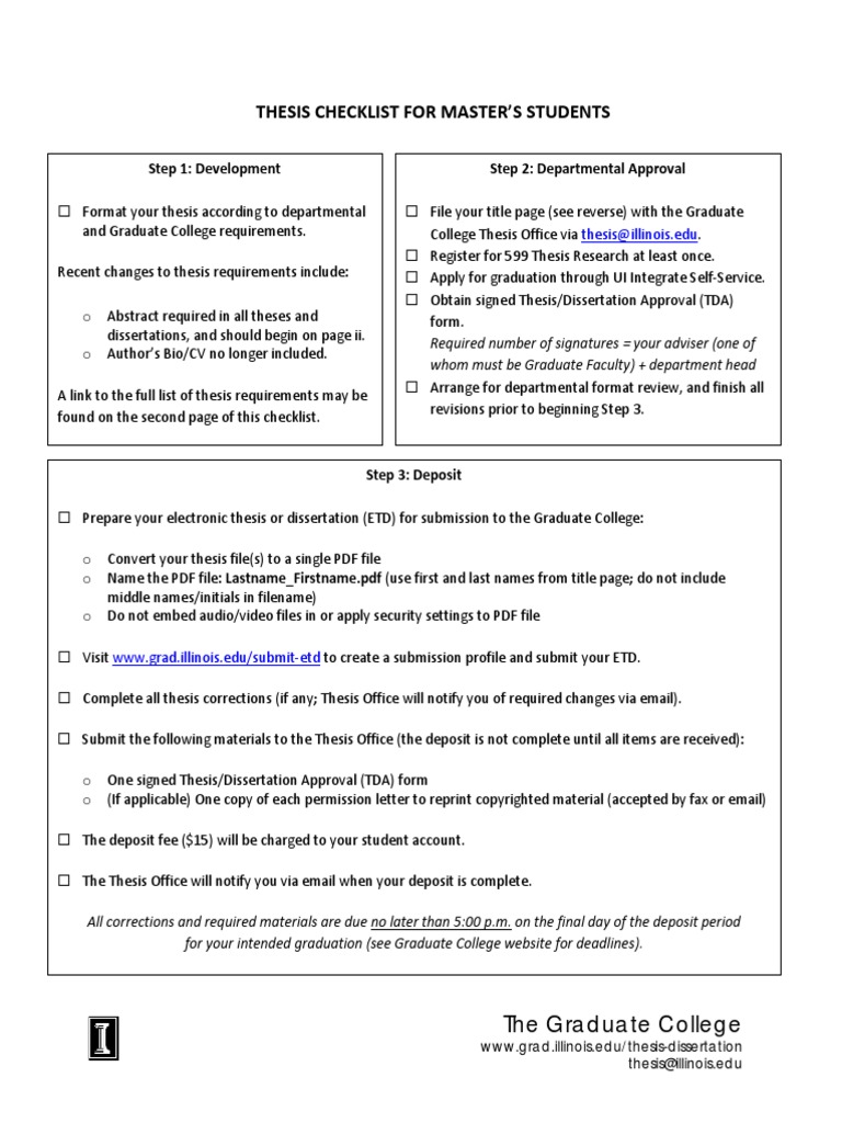Masters Checklist Thesis Academia