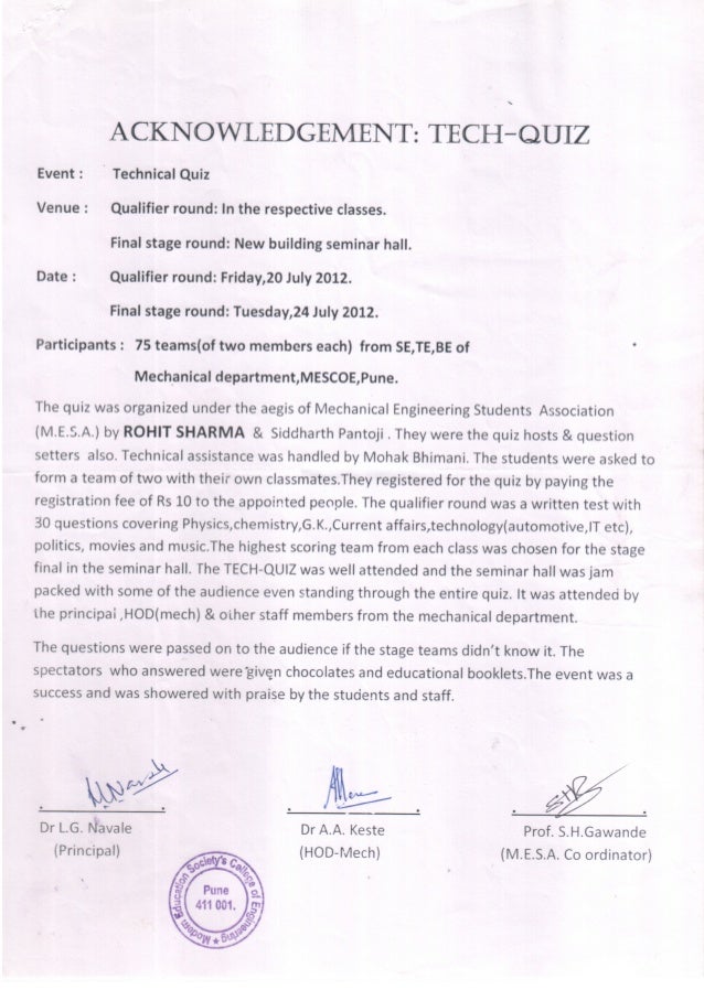 Tech Quiz Acknowledgement Certificate