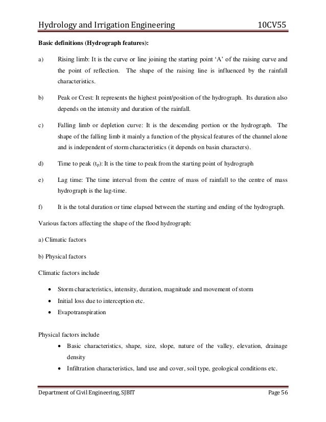 Civil V Hydrology And Irrigation Engineering 10 Cv55 Notes