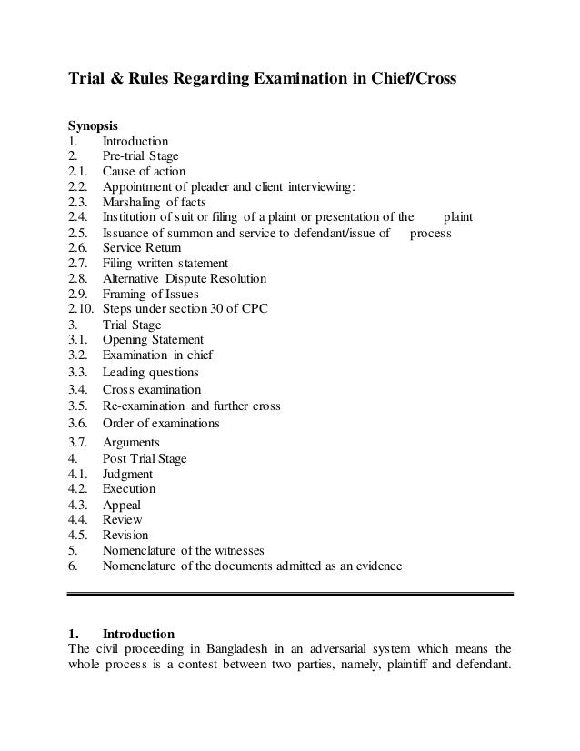 Trial Rules Regarding Examination In Chief Cross