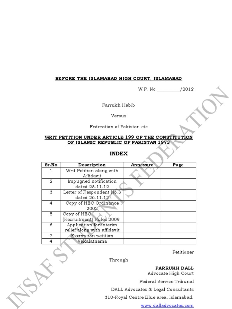 Isf Writ Petition In Ihc Social Institutions Society