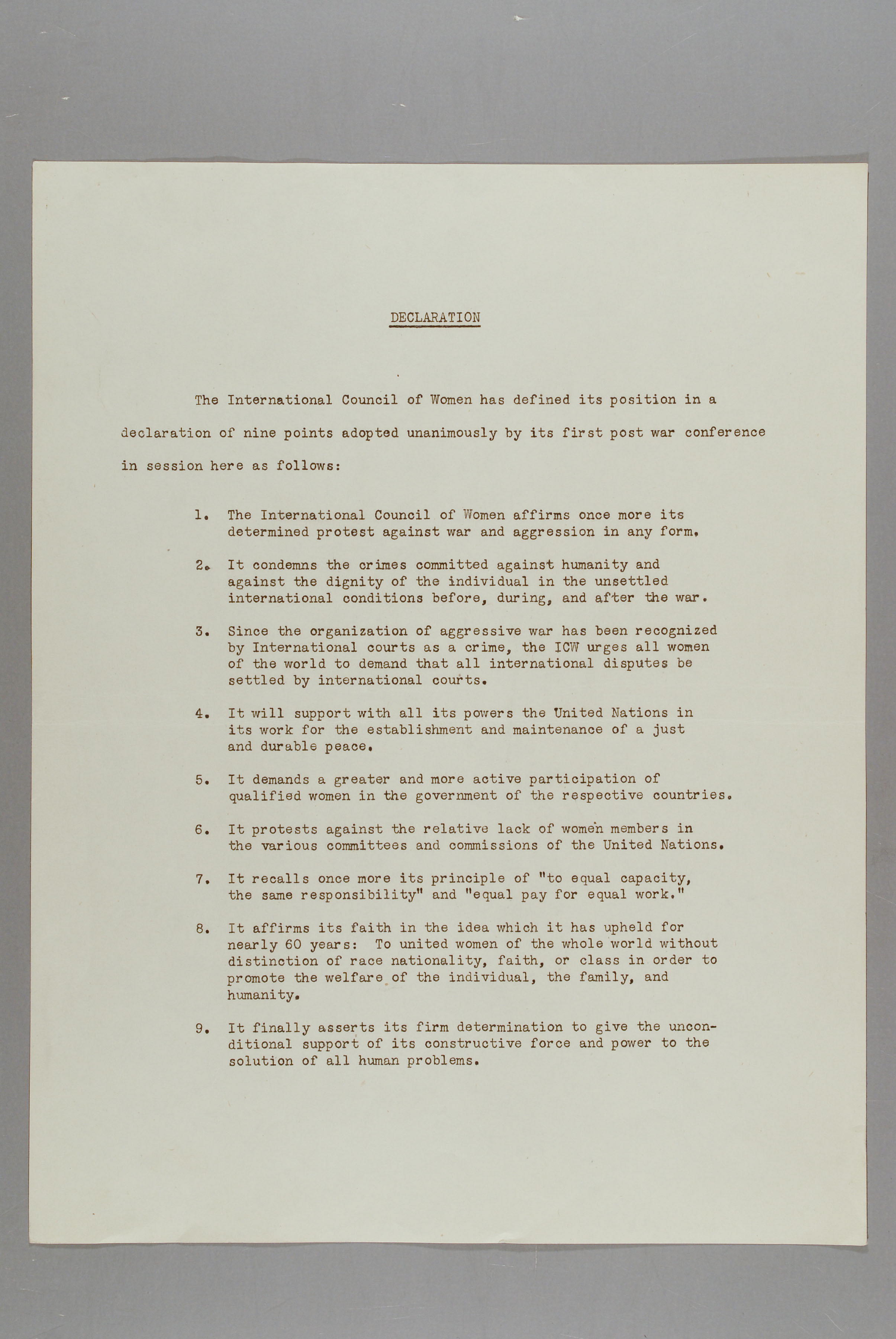 Declaration Of Nine Points Adopted At The First Post War