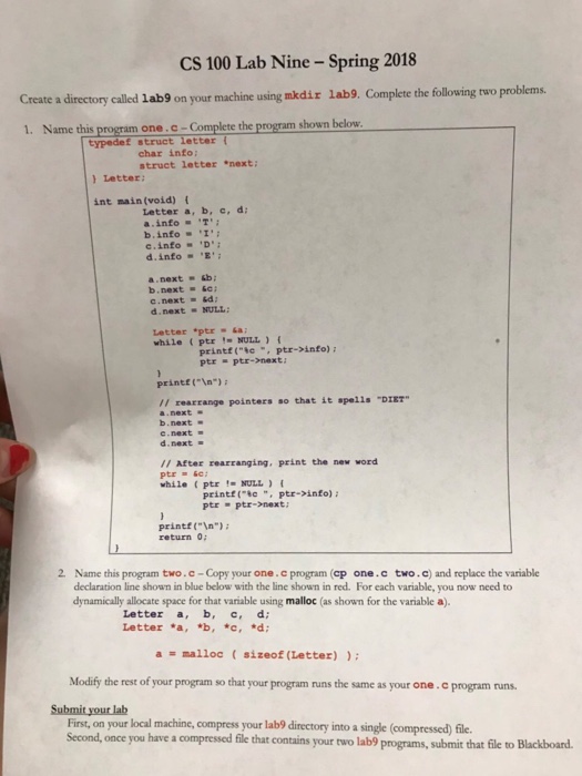 Solved Cs 100 Lab Nine Spring 2018 Create A Directory Ca