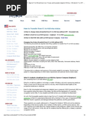 F1 To H1b H 1 B Visa Permanent Residence United States