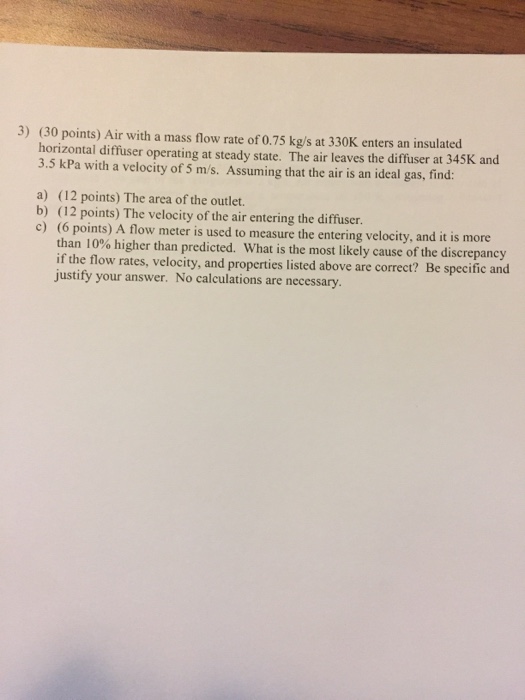 Solved Air With A Mass Flow Rate Of 0 75 Kg S At 330k Ent