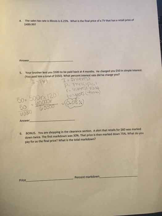 Solved The Sales Tax Rate Is Illinois Is 625 What Is Th