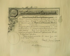 Details About 1893 Columbian Exposition Original Award Certificate Letter And Mailing Tube