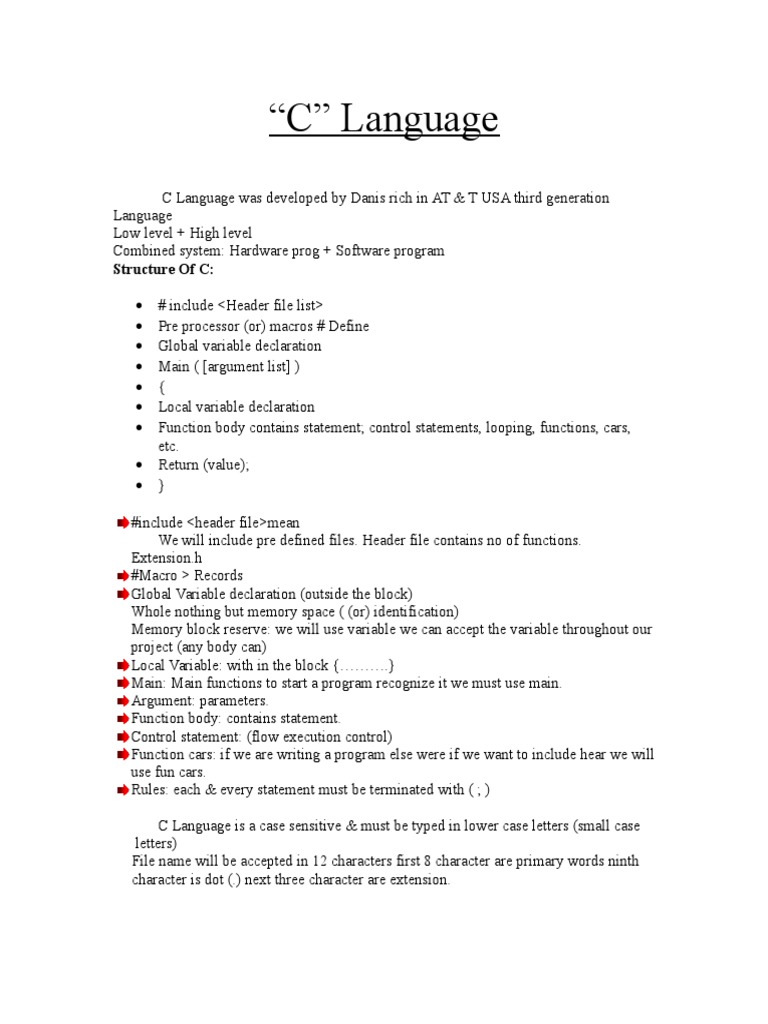 Introduction To C Programming Notes