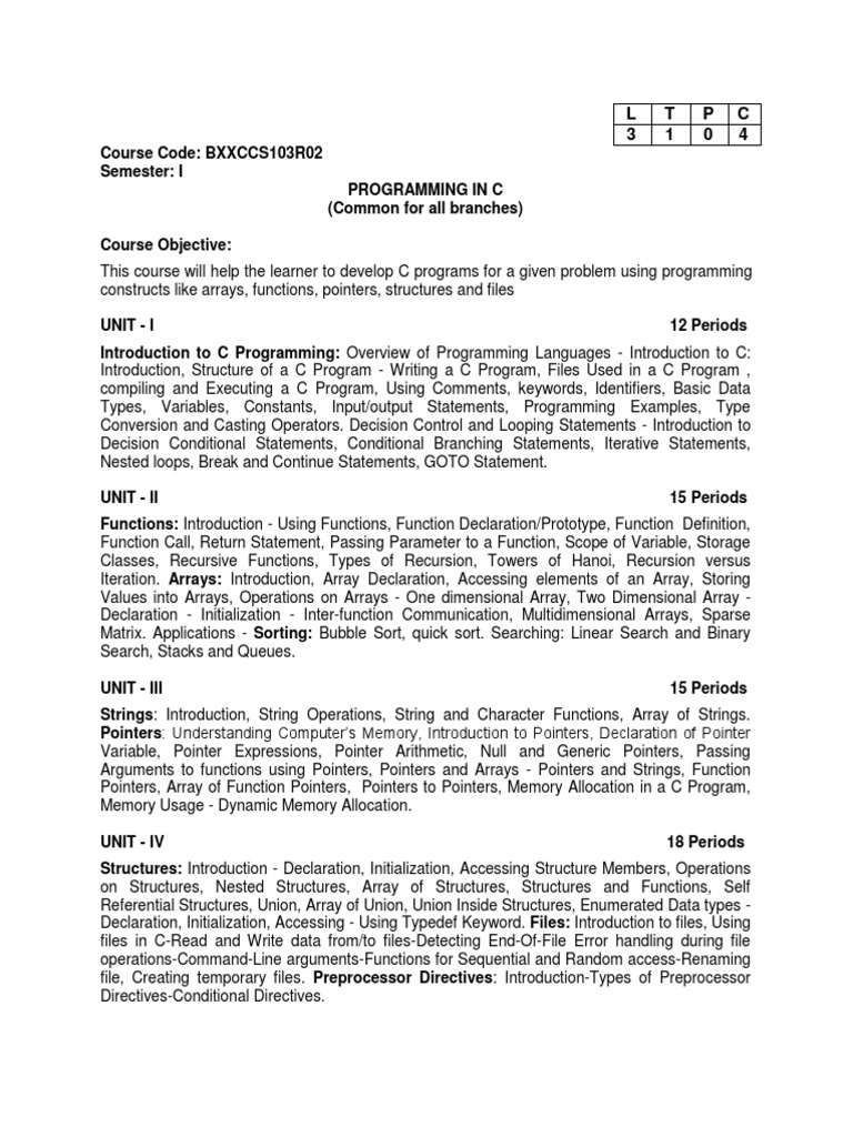Programming In C And Data Structures Docsity