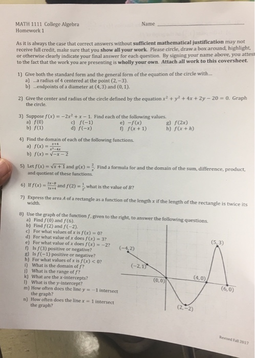 Solved Math 1111 College Algebra Homework 4 Name As It Is