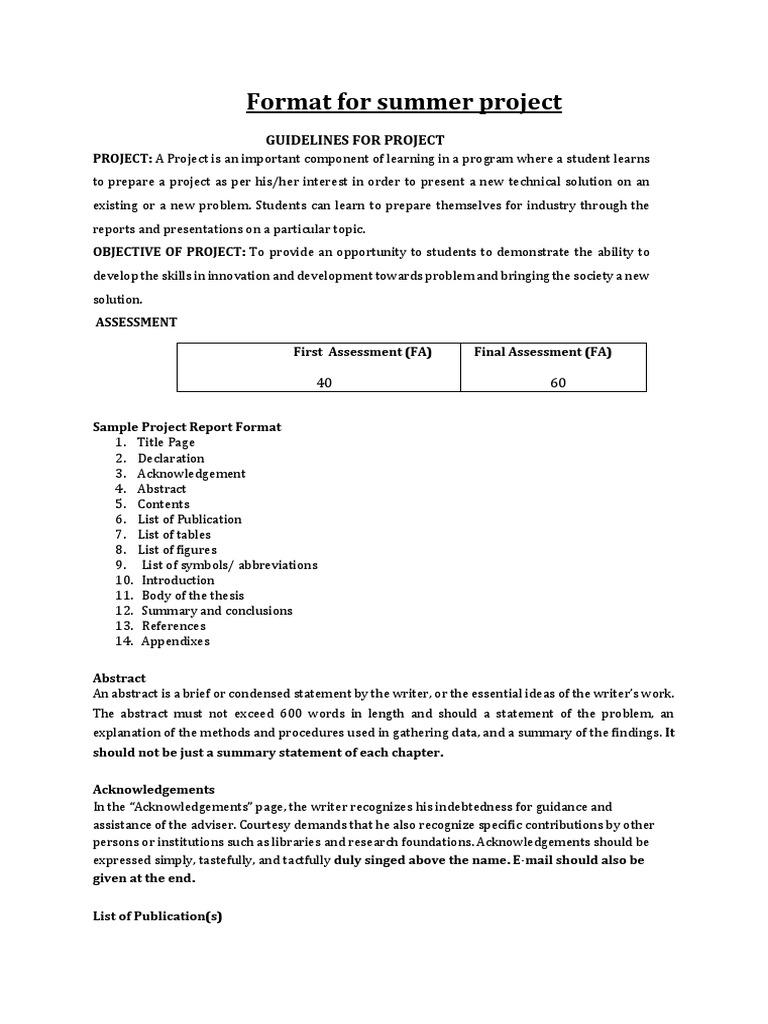 Format For Summer Project Thesis Computing