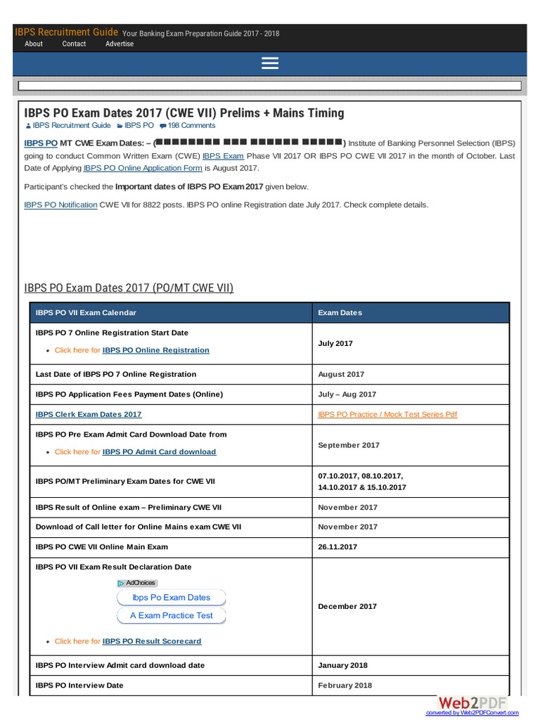 Ibps 2018 Cwe Po Mt Viii Notification Exam Dates Apply