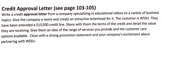 Solved Credit Approval Letter See Page 103 105 Write A