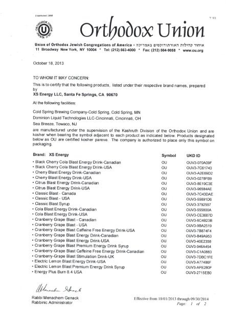 Kosher Letter Of Certification Loc Ou Kosher Certification