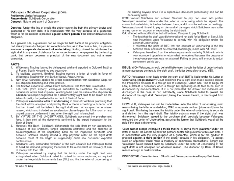 1 Velasquez V Solidbank Corporation Guarantee Private Law