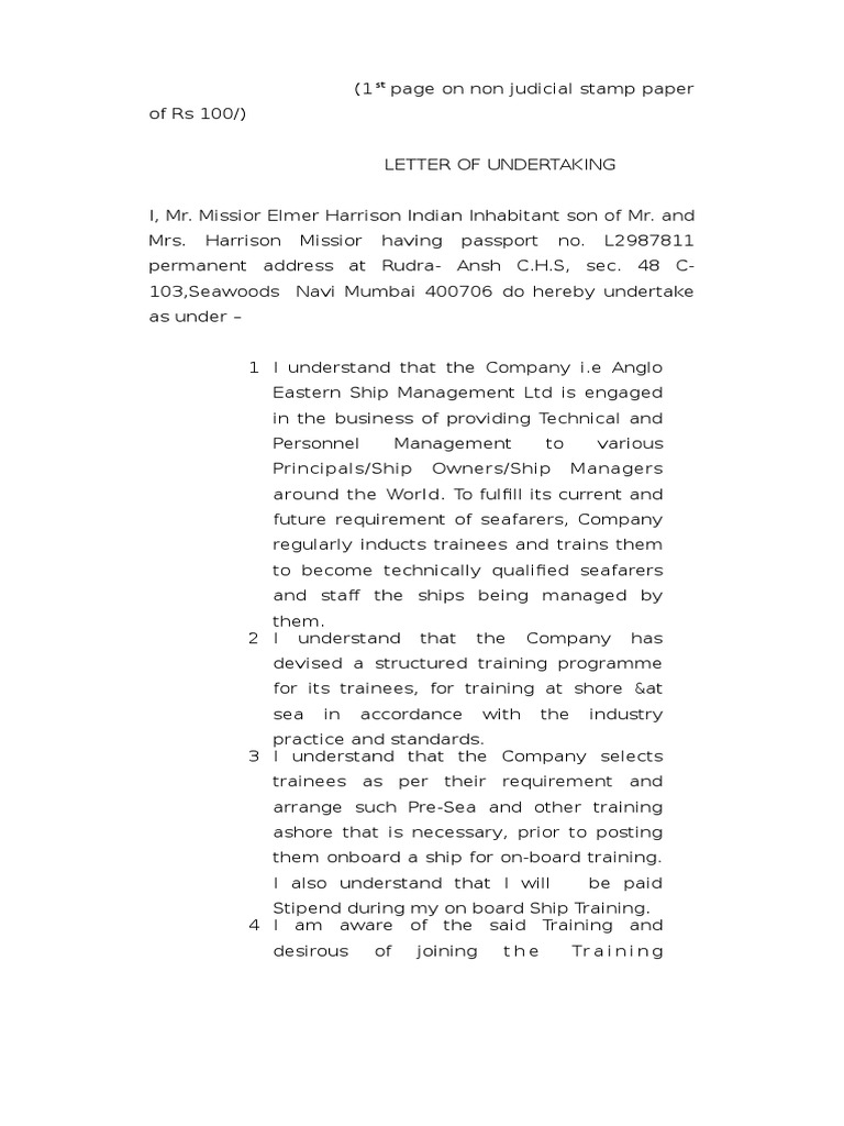 Undertaking By Trainee Eto Jurisdiction Social Institutions