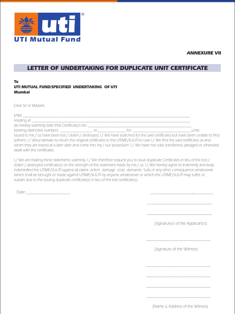 Letter Of Undertaking For Duplicate Unit Certificate