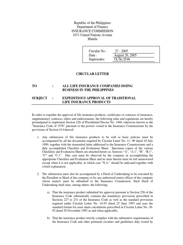 Expeditious Approval Circular Actuarial Science Life