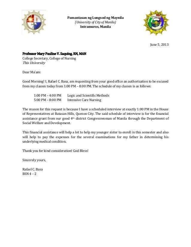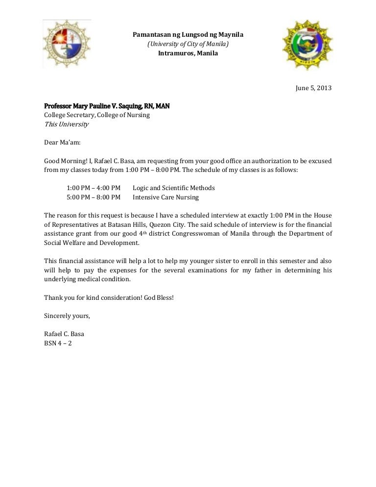 Excuse Letters 1 August 2014 To All Professors Mapa