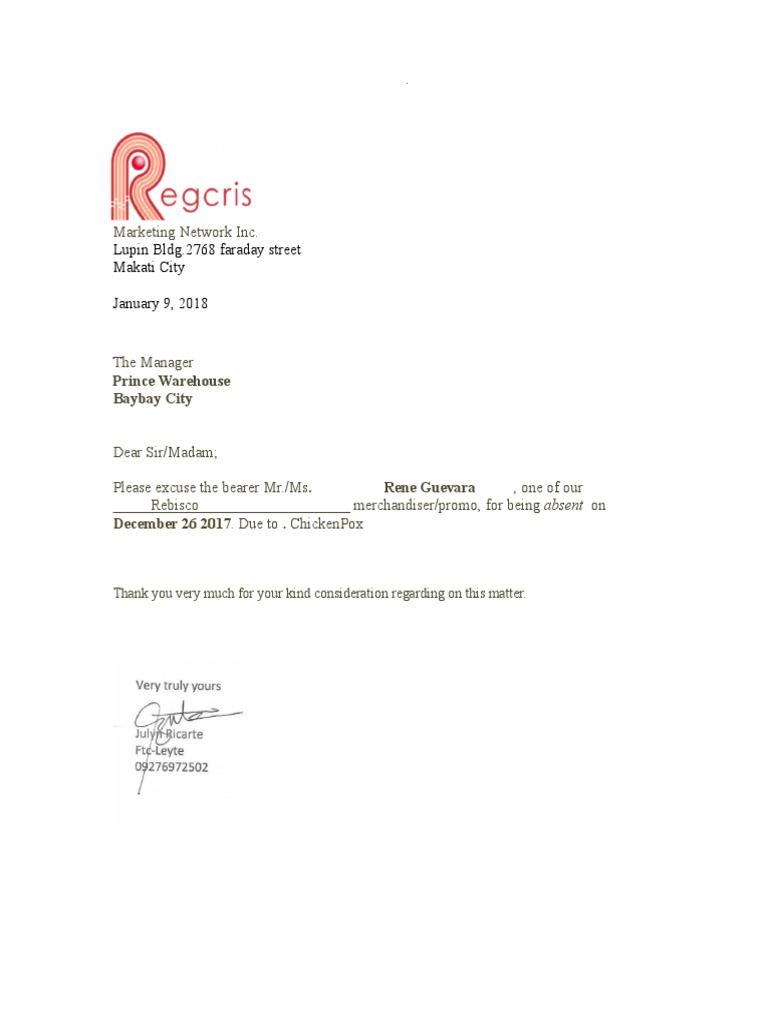 5 Excuse Letter For Work Sample Mael Modern Decor