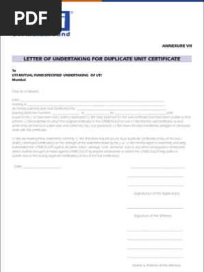 Fillable Online Letter Of Undertaking For Duplicate Unit