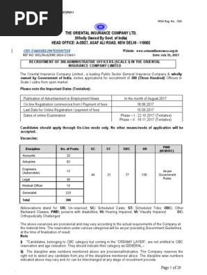 Oicl Ao Recruitment 2017 300 Ao Post At Orientalinsurance