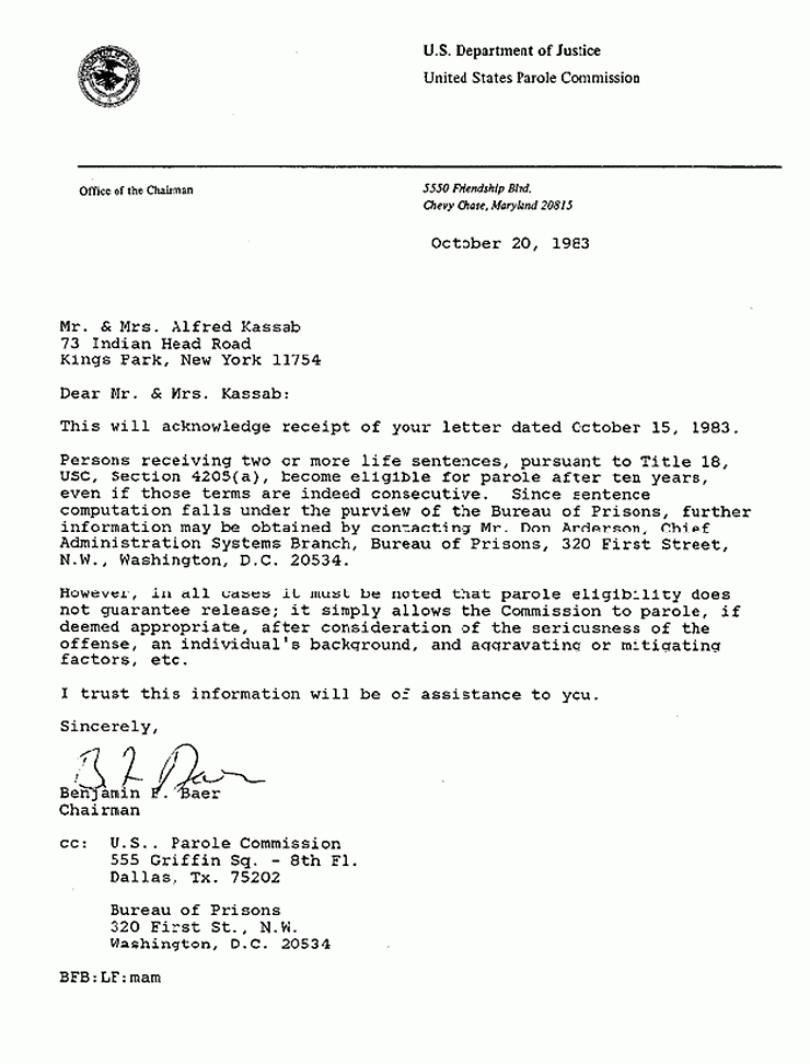 Jeffrey Macdonald S Parole Parole Commission Letter Oct