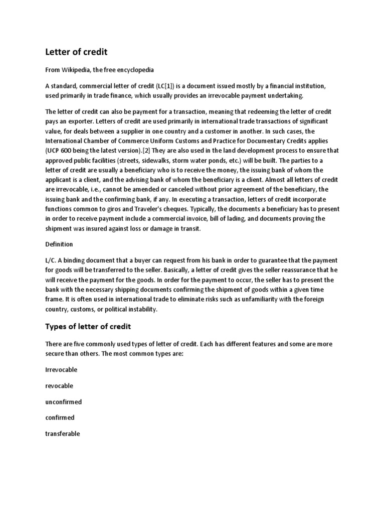 Letter Of Credit Letter Of Credit Credit Finance