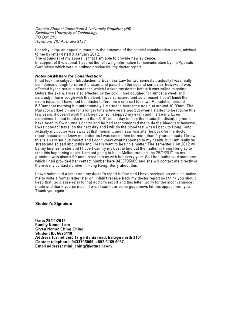 Sample Letter Special Consideration University Guatemalago