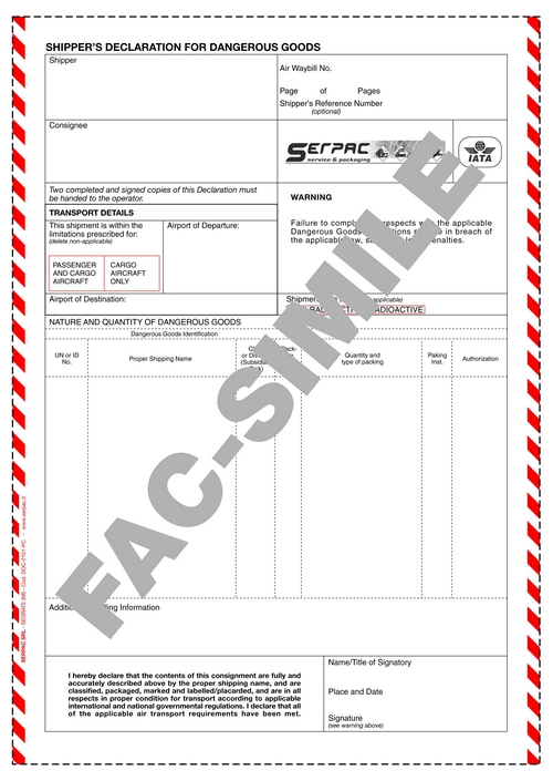 Shippers Declaration For Dangerous Goods 250 Pack On Popscreen