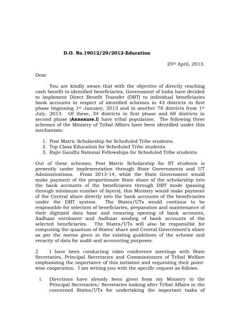 Ta Letter To Chief Secretary Of States Uts Ministry Of
