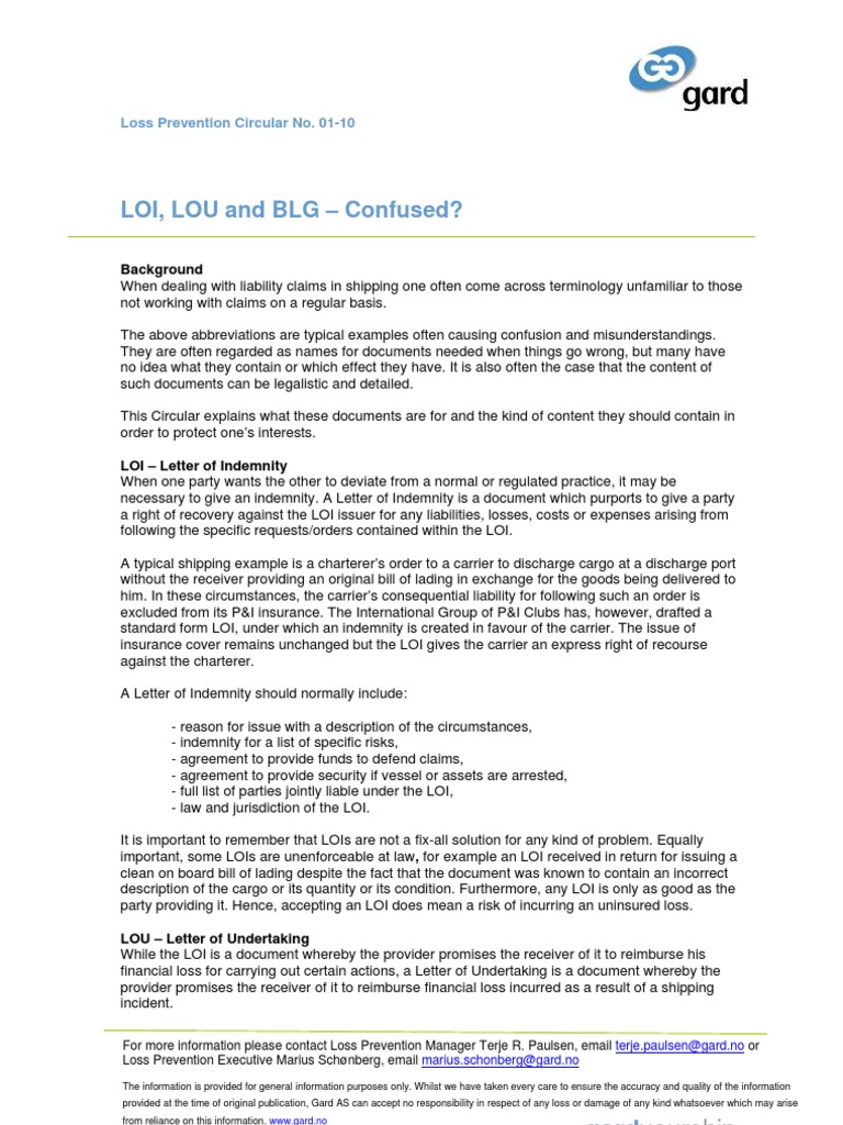Letter Of Comfort Undertaking Loc Lou Charges Buyer S